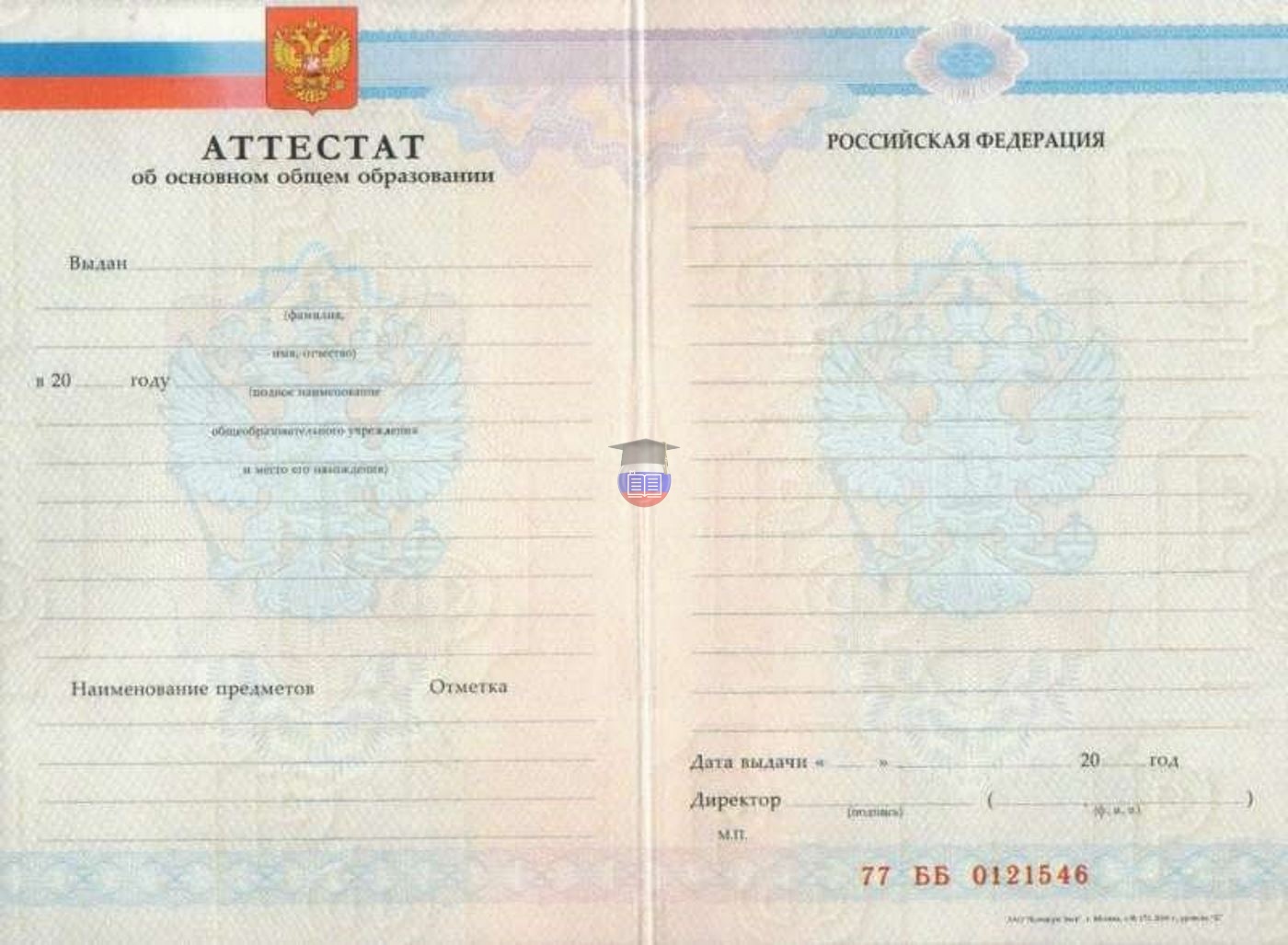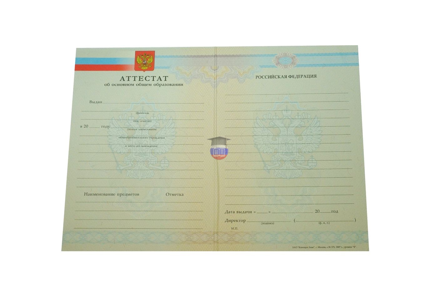 Аттестат об основном общем образовании — документ, выдаваемый ученикам общеобразовательной школы после окончания девяти классов. Документ позволяет поступать в колледж или техникум, либо продолжать учебу в школе. При заполнении не допускаются ошибки, исправления, помарки, пропуски строк, пятна типографской краски, нечеткий шрифт. Оттиск печати учреждения — четкий, легко читаемый.