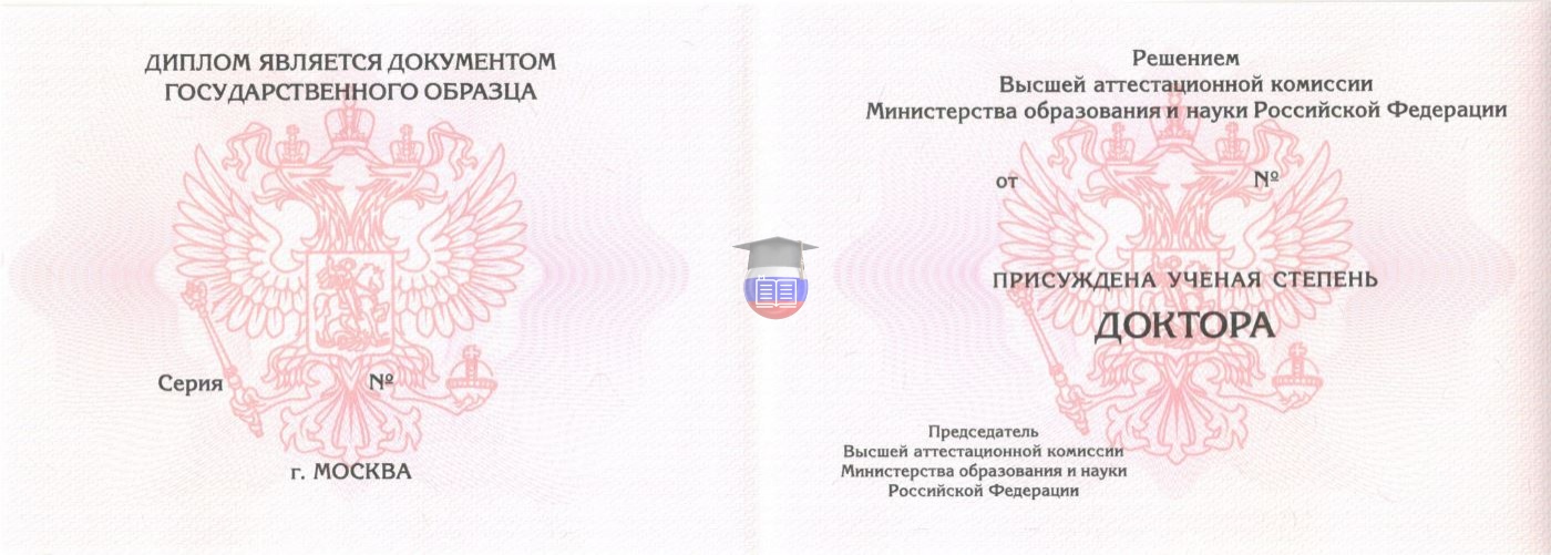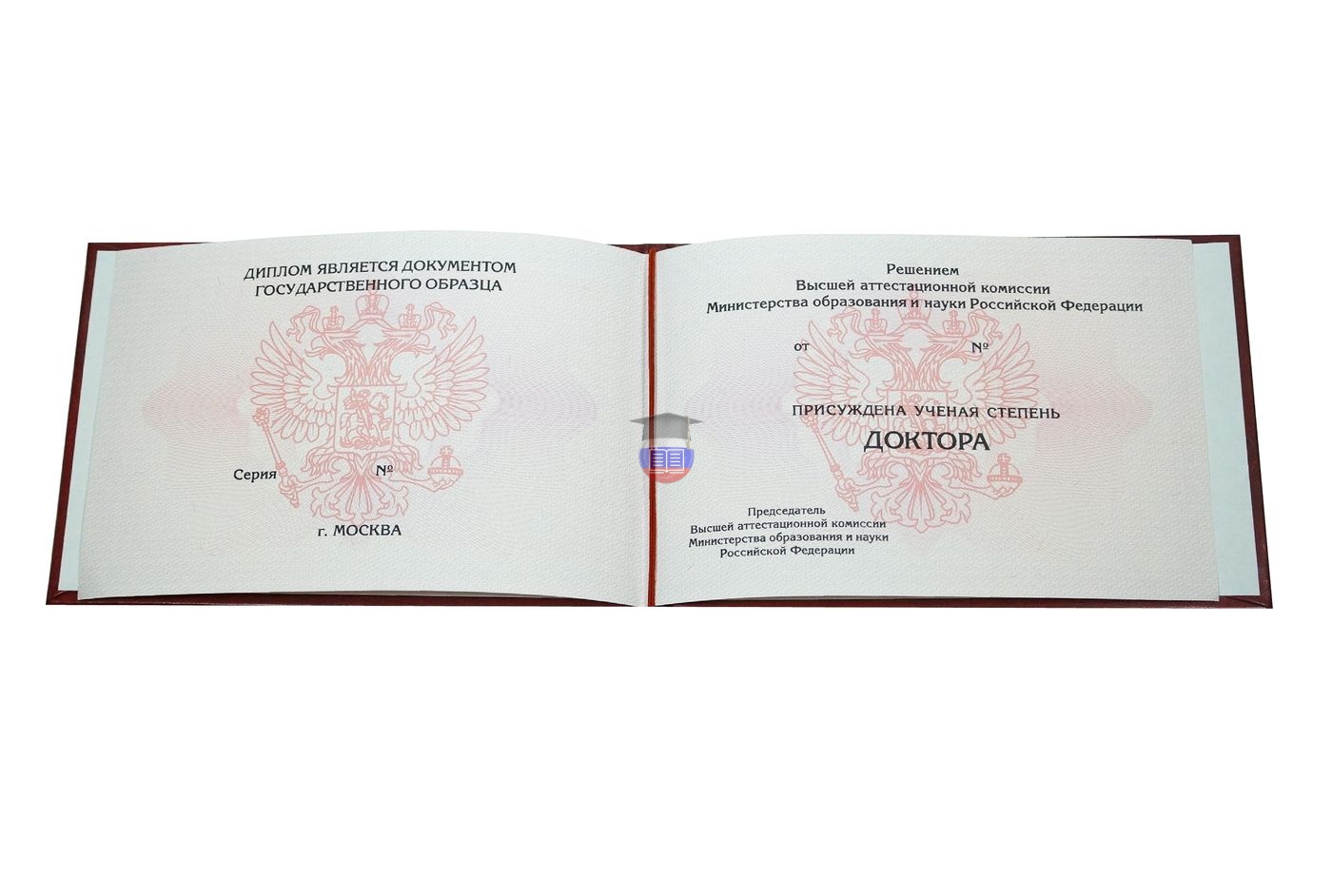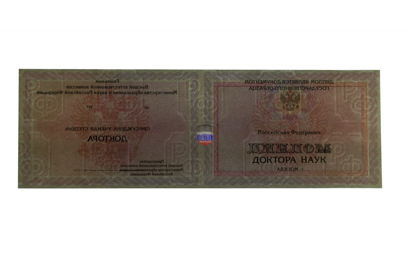 Диплом выдается учёному, успешно защитившему докторскую диссертацию и публикующему авторские работы в журналах. Корочки вручаются в течение двух месяцев со дня издания приказа. Бланк подписывается руководителем учреждения, в котором проходила защита диссертации. В правой части оборотной стороны — название диссертационного совета, номер и дата решения. Заполнение — на принтере или черной тушью каллиграфическим почерком.