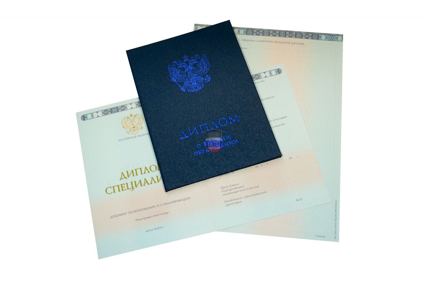 Диплом специалиста — документ о присвоении квалификации после прохождения специальной программы обучения. Её особенности — узкий профиль, сочетание углубленной теории с практикой, обучение в течение 5-5,5 лет. В комплекте — бланк установленного образца, заполненный по правилам Минобразования и науки РФ. Степени защиты — голографические знаки, водяной оттиск, узор из непрерывных линий, мокрая печать вуза, регистрационный номер соответствующий региону выдачи.