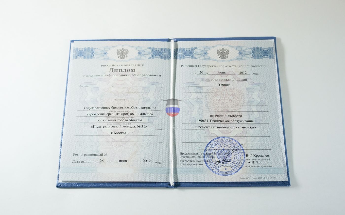 Заполненный диплом колледжа / техникума с 2011 по 2013 годы выдачи