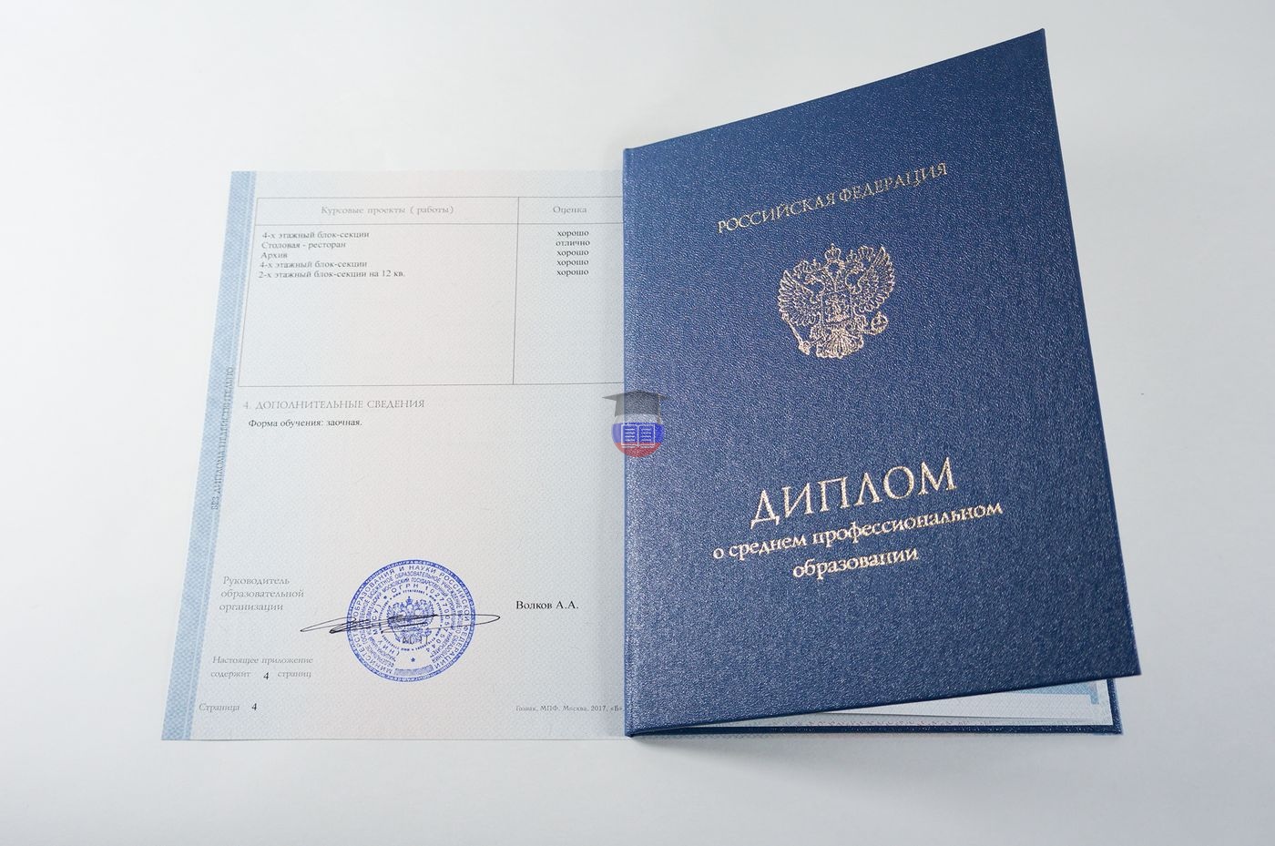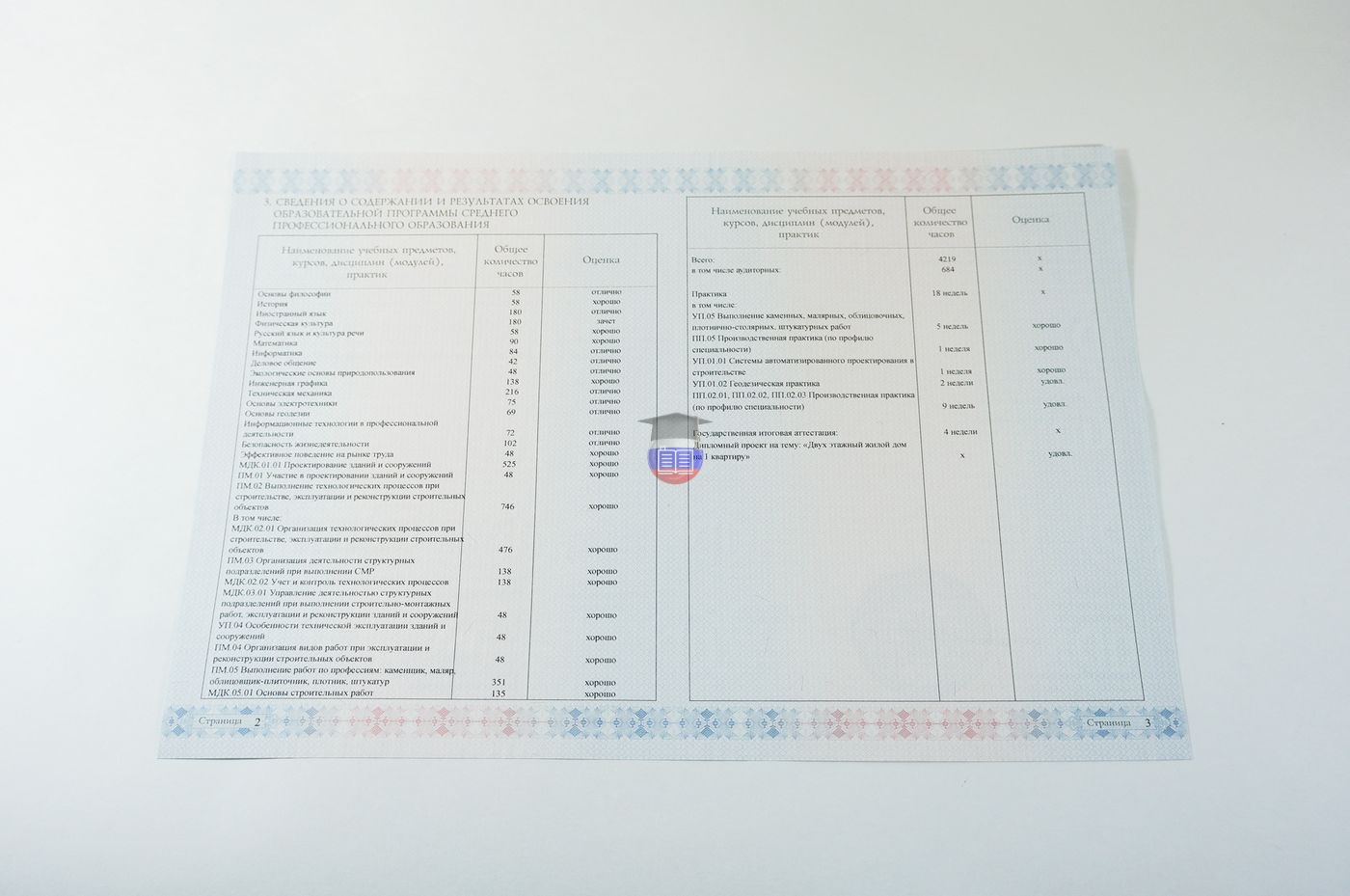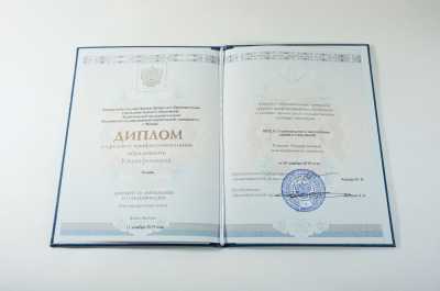 Пример заполненного диплома колледжа / техникума (ГОЗНАК)