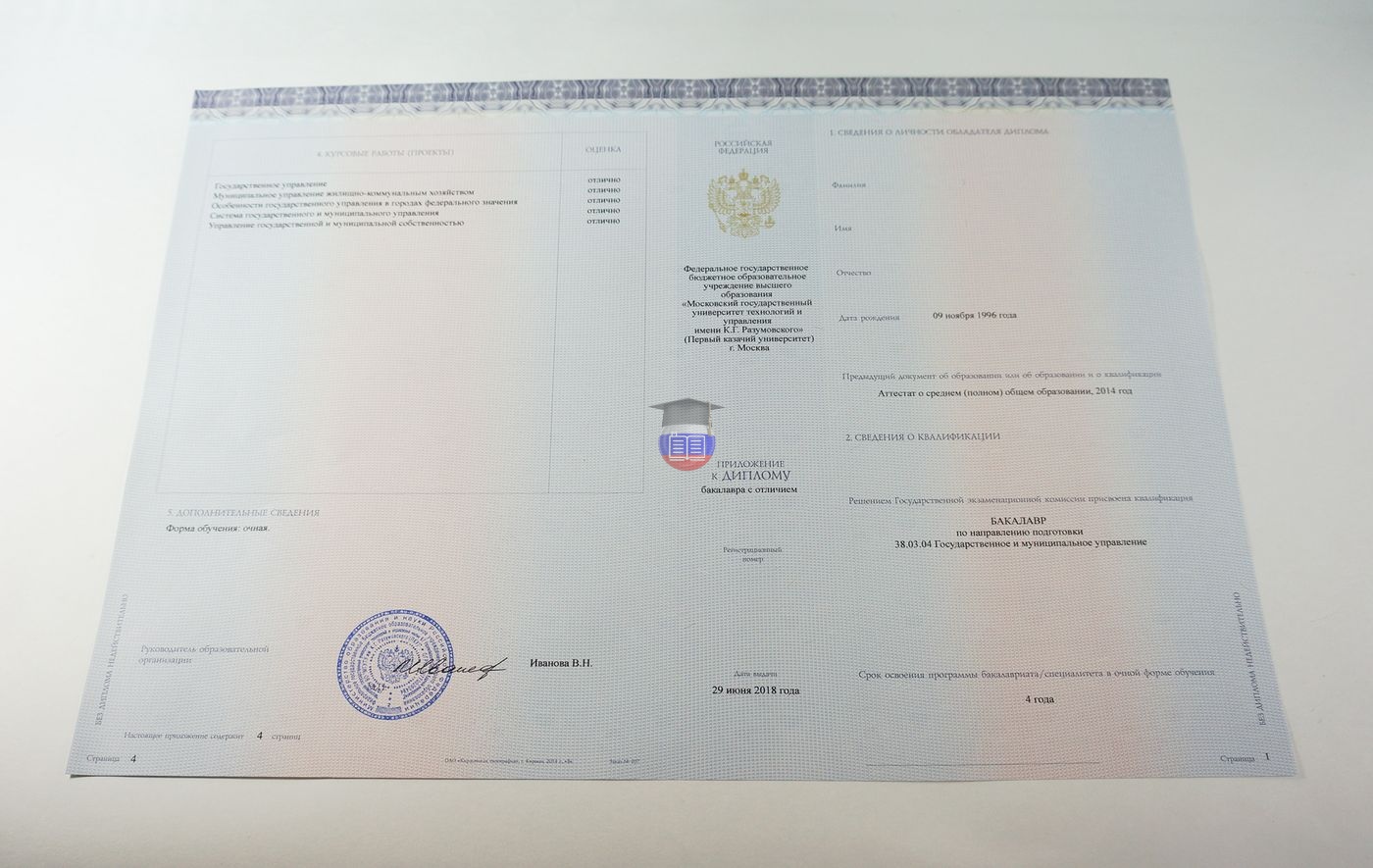 Пример заполненного диплома бакалавра 2014 - 2023 годов с отличием