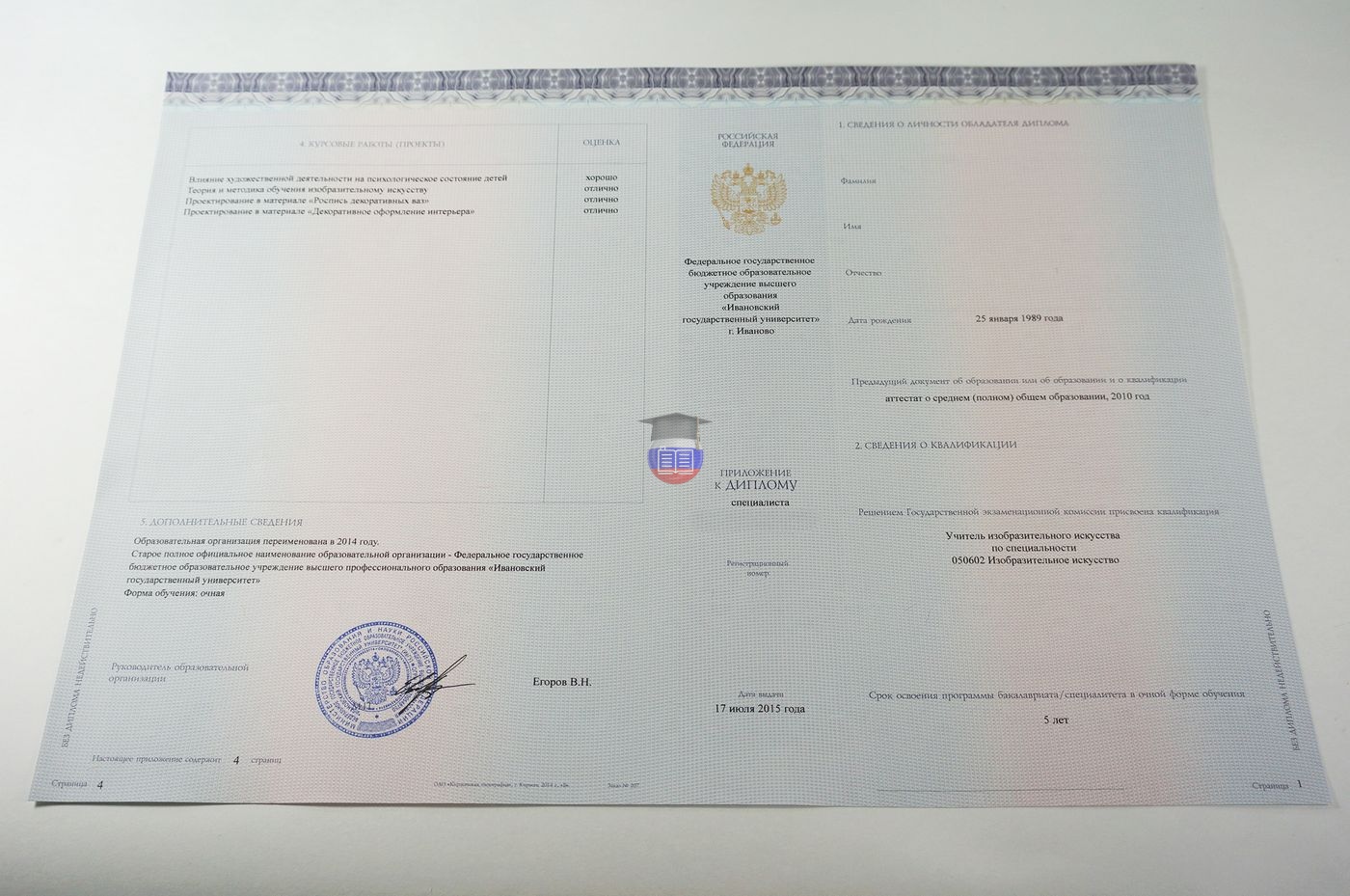 Пример заполненного диплома специалиста 2014 - 2023 годов